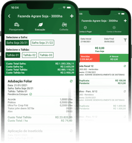 - Controle por Safra e Talhão: acompanhe o desempenho de cada área.